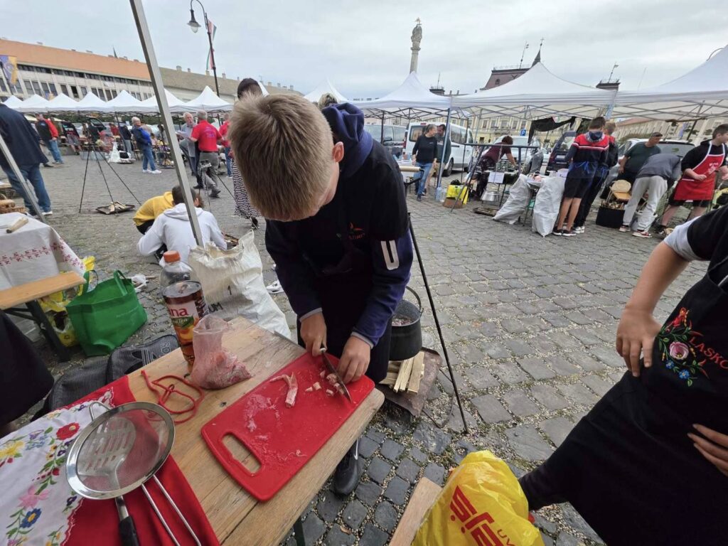 Na natjecanju su sudjelovala tri učenika: Tibor Faraho, Zack Fekete i Noel Kelemen. Pratili su ih školski kuhar i ravnateljica. Sa sobom su poveli i prvaka Zakarpatskih regija u kuhanju fiš paprikaša, Erika Munka. Eriku zahvaljujemo na velikoj i iskrenoj pomoći – naši su učenici od njega mnogo naučili o tome kako se priprema pravi bajski fiš paprikaš.